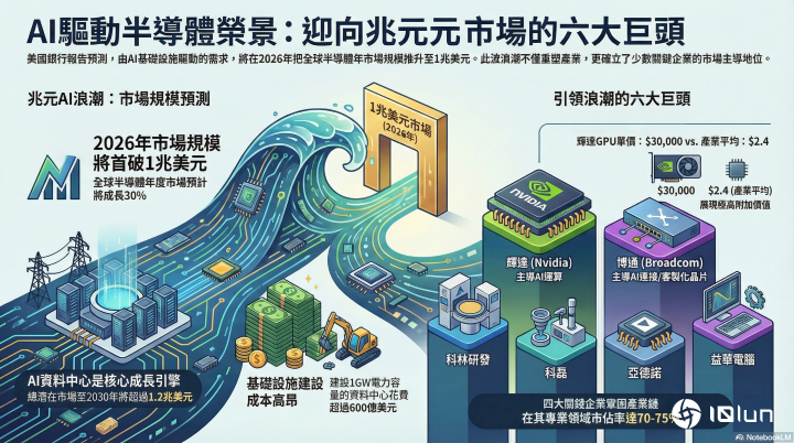 好意思国银行(Bank of America,BAC)最新发布的最新深度商榷露馅,分析师预测,2026年将成为半导体历史上的要津里程碑,大众半导体年度商场限度展望将增长30%,并首度打破1兆好意思元的历史大关。