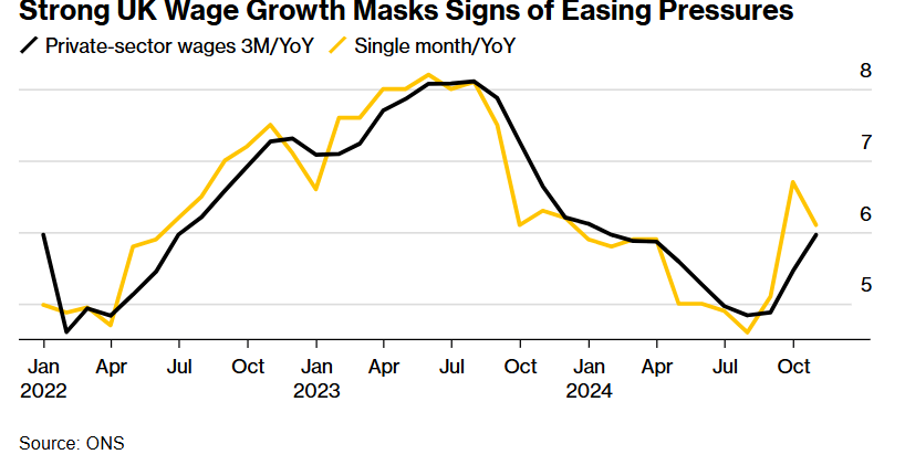 这些数据发布的时刻距离英国央行决定是否链接降息仅两周多余,而劳能源阛阓的景况对英国央行的降息决定至关进攻。自8月以来,对合手续通胀压力的担忧已促使英国央行只是两次放宽货币策略,使得该国央行逾期于欧元区和好意思国中央银行同业。
